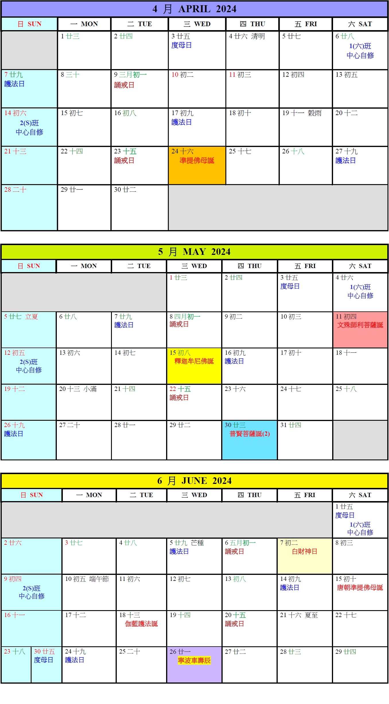 山上共修月曆表