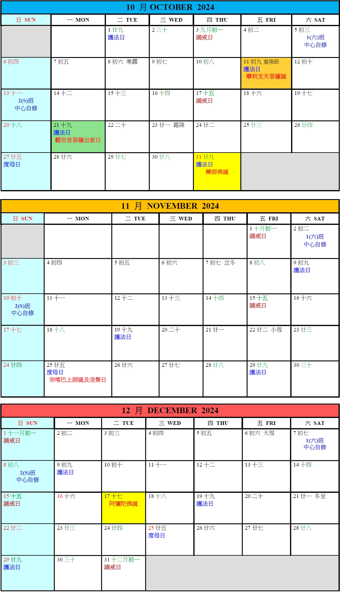 山上共修月曆表